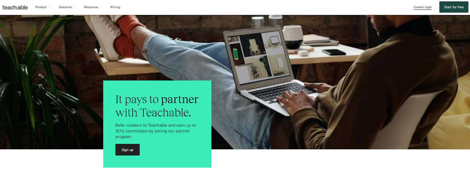 Teachable is a popular platform that helps businesses create and sell educational content like online courses, guides, ebooks, and other digital products. With Teachable's affiliate partner program, you can earn up to 30% commissions when referring creators to the platform.