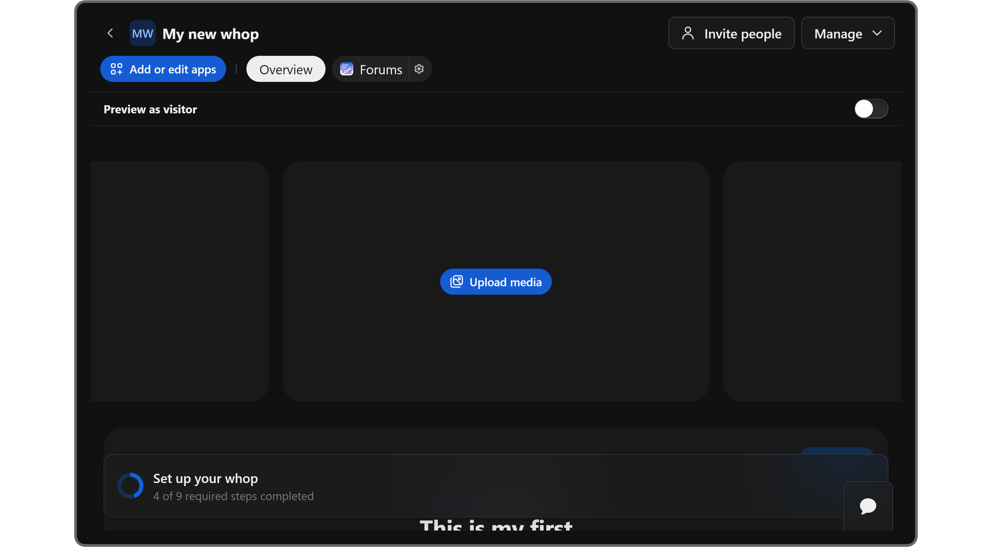 After clicking the Create my Whop button, you’ll be taken directly to your new whop - congrats!
