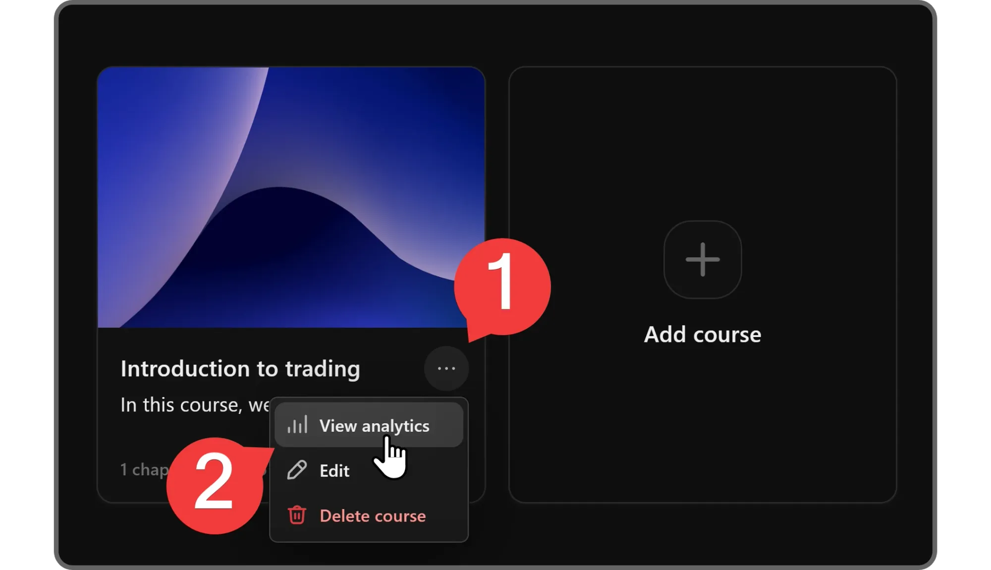 Clicking on the View analytics button in the context menu of any course you create will take you to its analytics page where you can see individual analytics for students and lessons of your course.