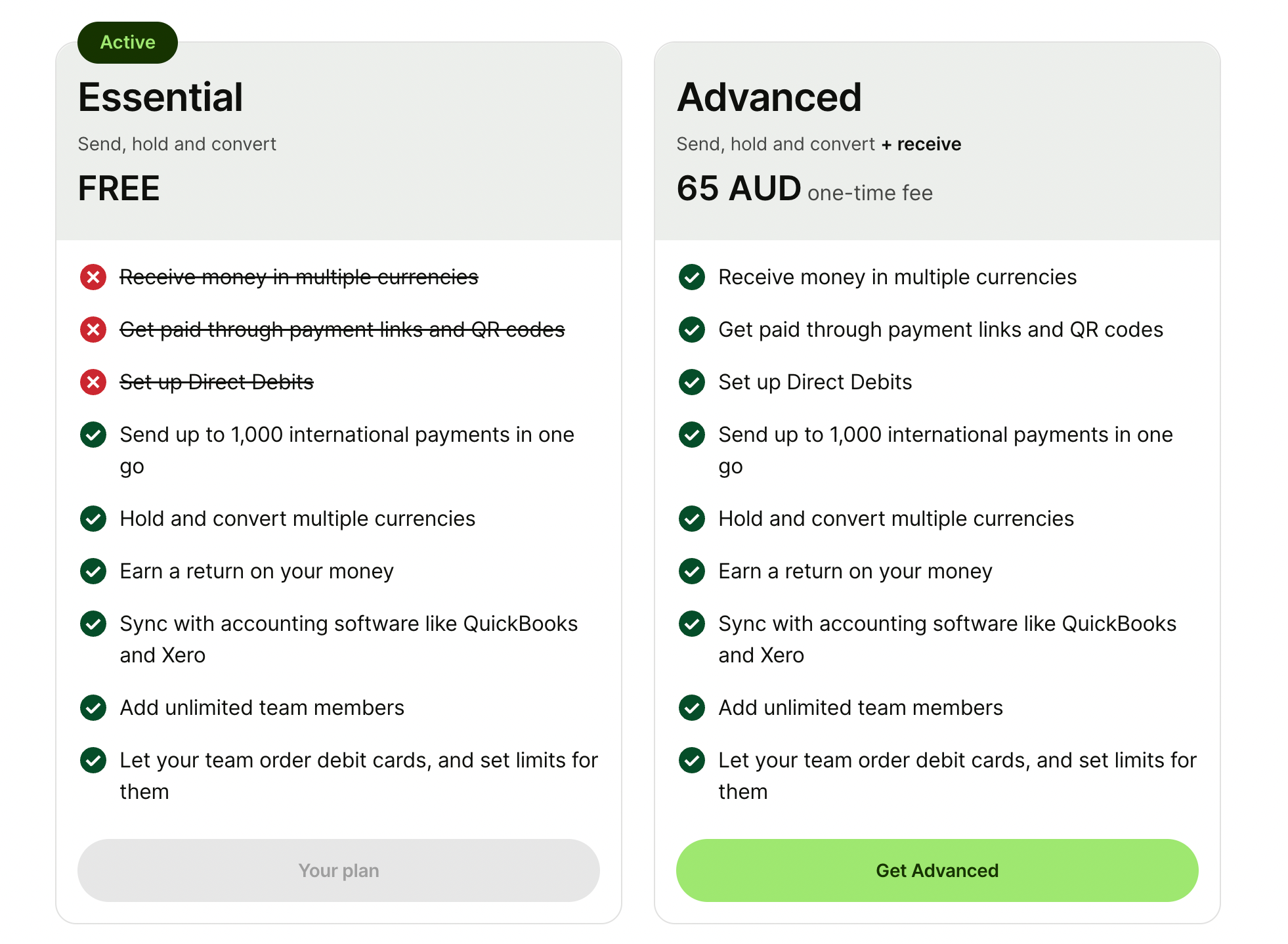 There are two Wise plans to choose from: Essential and Advanced.